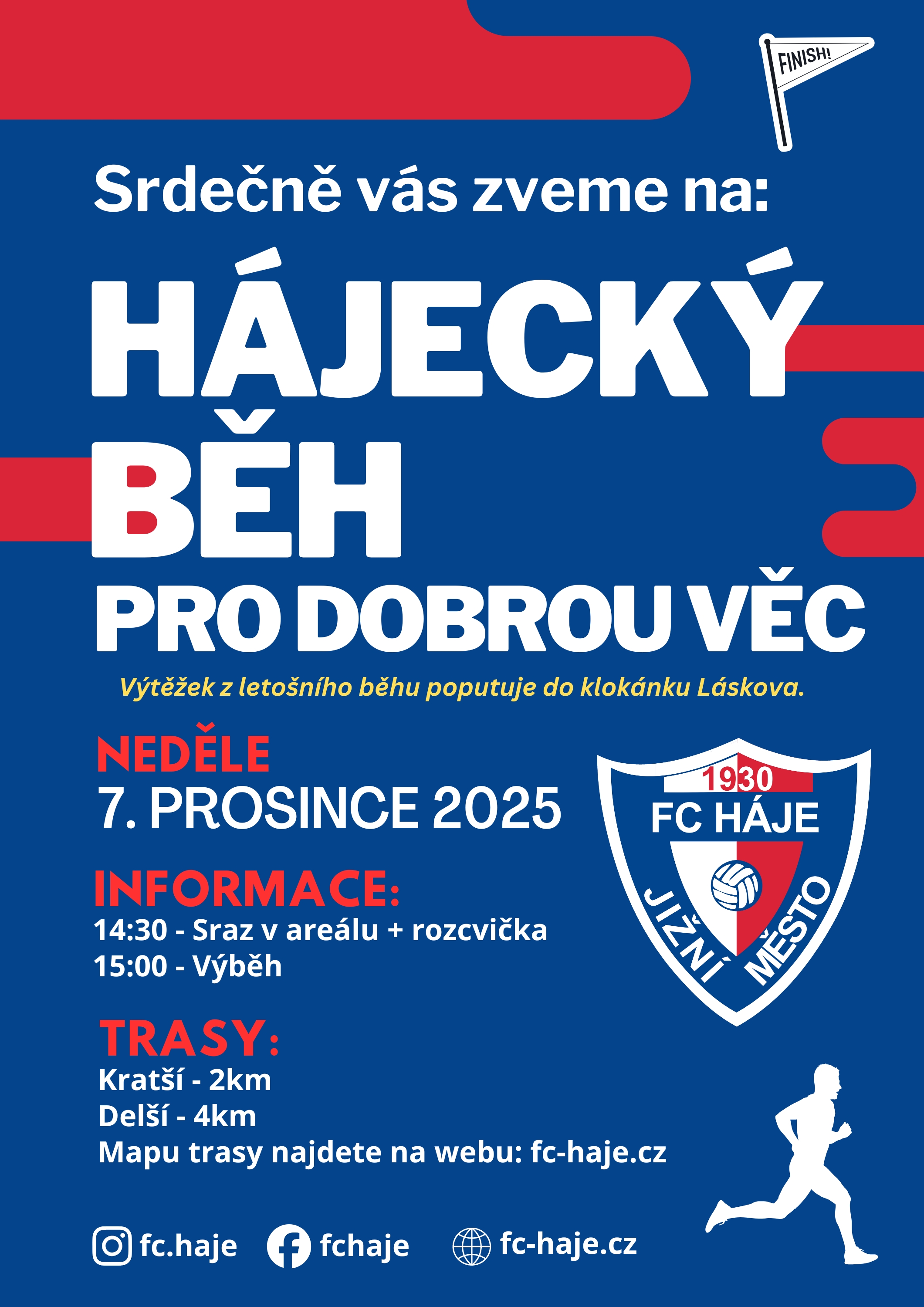 V neděli 7. prosince 2025 se v areálu FC Háje Jižní Město uskuteční další ročník Hájeckého běhu pro dobrou věc – akce, která spojuje sport, komunitu a pomoc těm, kteří ji potřebují.