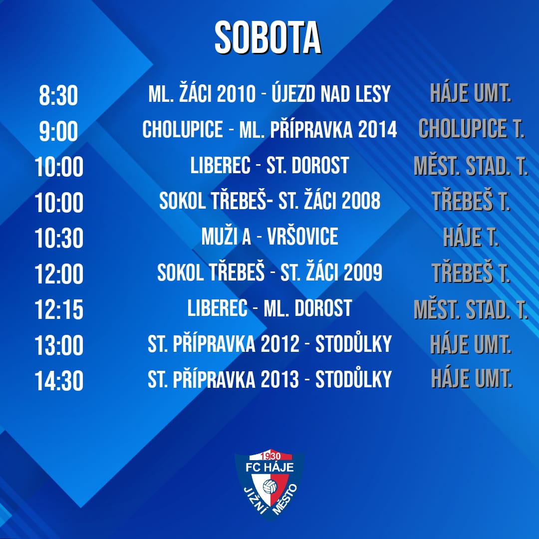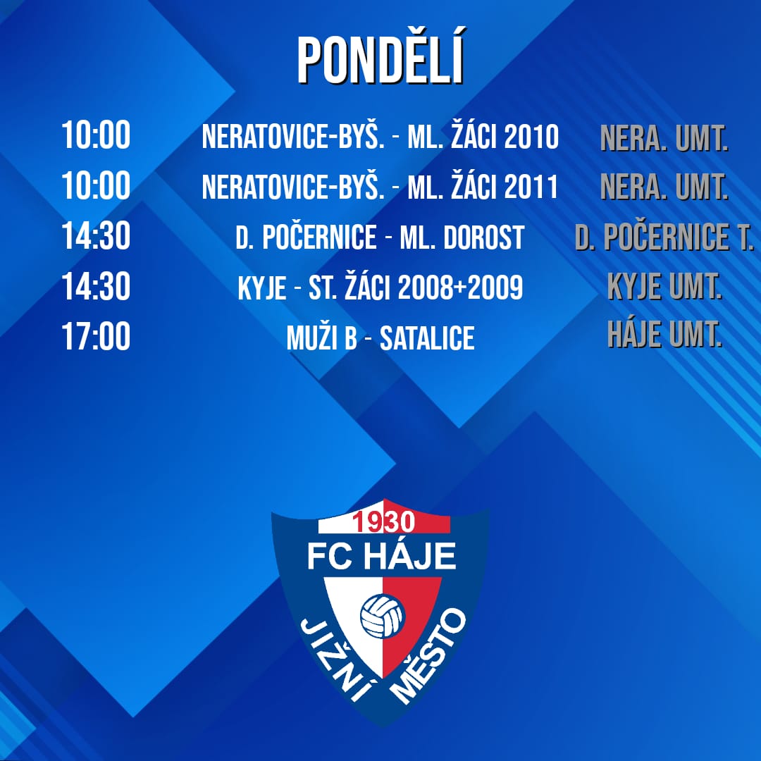Níže naleznete rozpis utkání, netradičně díky prodlouženému víkendu až do pondělí. Ale leč se v neděli na Hájích nehraje žádný zápas, nuda tam rozhodně nebude.