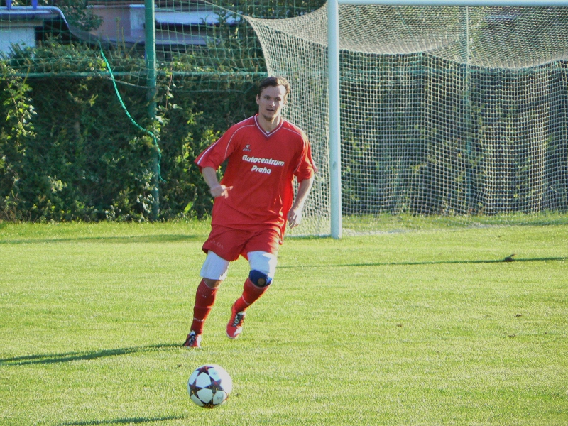 Do zápasu jsme nastoupili s velkým elánem a od první minuty soupeře přehrávali. V 7. minutě přihrál Hančl Vejvalkovi, ten míč potáhl do strany a z velkého úhlu trefil zadní tyč. Dobíhající Solař nestačil odražený balón doklepnot do branky. Ve 12. zahrozili domácí. Po brejku a kličce Provazníkovi se schylovalo ke gólu, naštětí Sojka míč těsně před brankovou čarou odkopl. V 15. minutě jsme ve vápně předvedli ťukes. Jeden z domácích to nervově nevydržel a fauloval Vejvalku. Z nařízené penalty v 16. minutě zahájil Pánek náš gólový uragán 0:1. V 21. našel Solař centrem z prava na druhé straně vápna Hančla, který halfvolejem nedal brankáři šanci 0:2. V 24. vystřelil z dálky netradičně levačkou Pánek. Jeho třela byla zblokovaná k Solařovi, který přihrál na penaltu Vejvalkovi. Pro něj nebyl problém zahájit svoje střelecké hody 0:3.