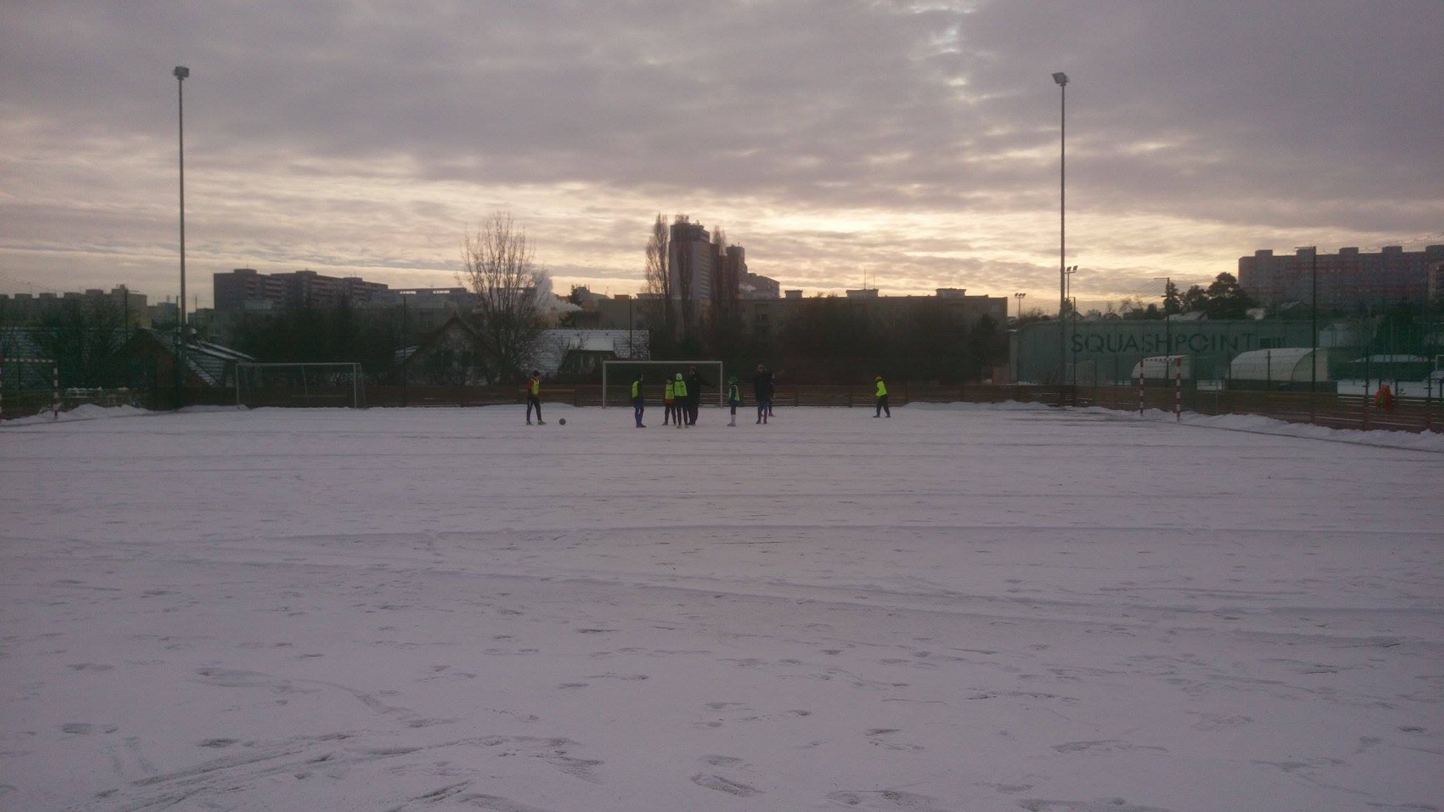 Půjčili jsme opět kluky do hostujícího týmu, tak aby hra byla vyrovnaná, v bráně začal Alex, ale spíš chytal vločky sněhu, než míče a Maty si třikrát poradil, poté ještě přidal branku Fany a s našim výběrem to vypadalo špatně, ale do druhého poločasu jsme vyměnili brankáře u nás, to samé udělal i soupeř a my jsme konečně začali proměňovat šance.