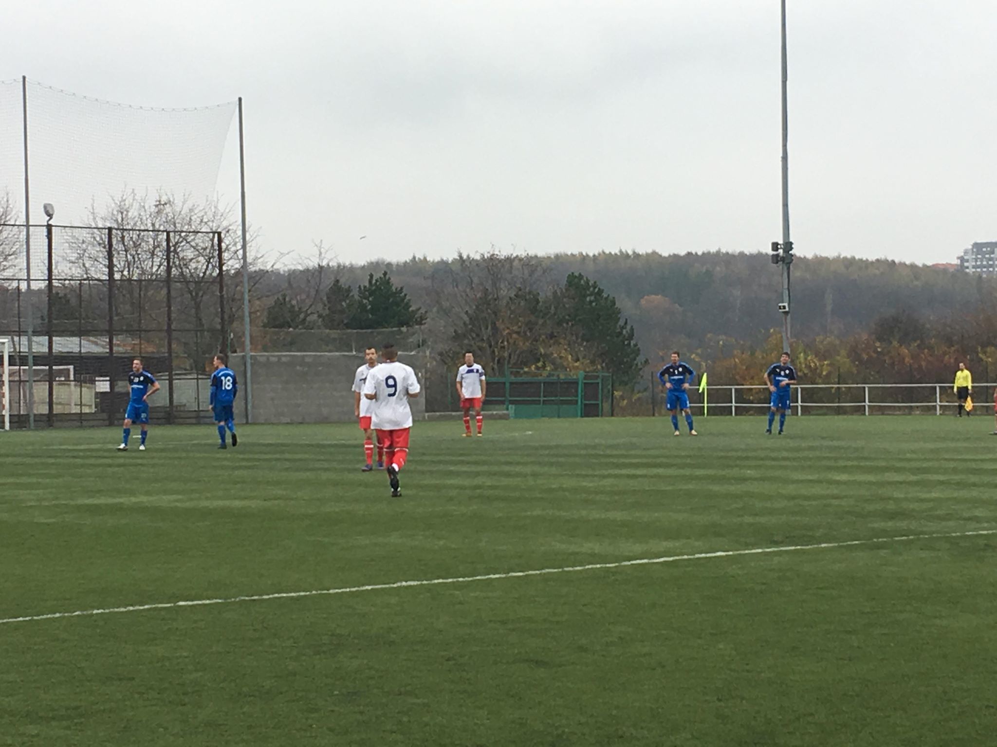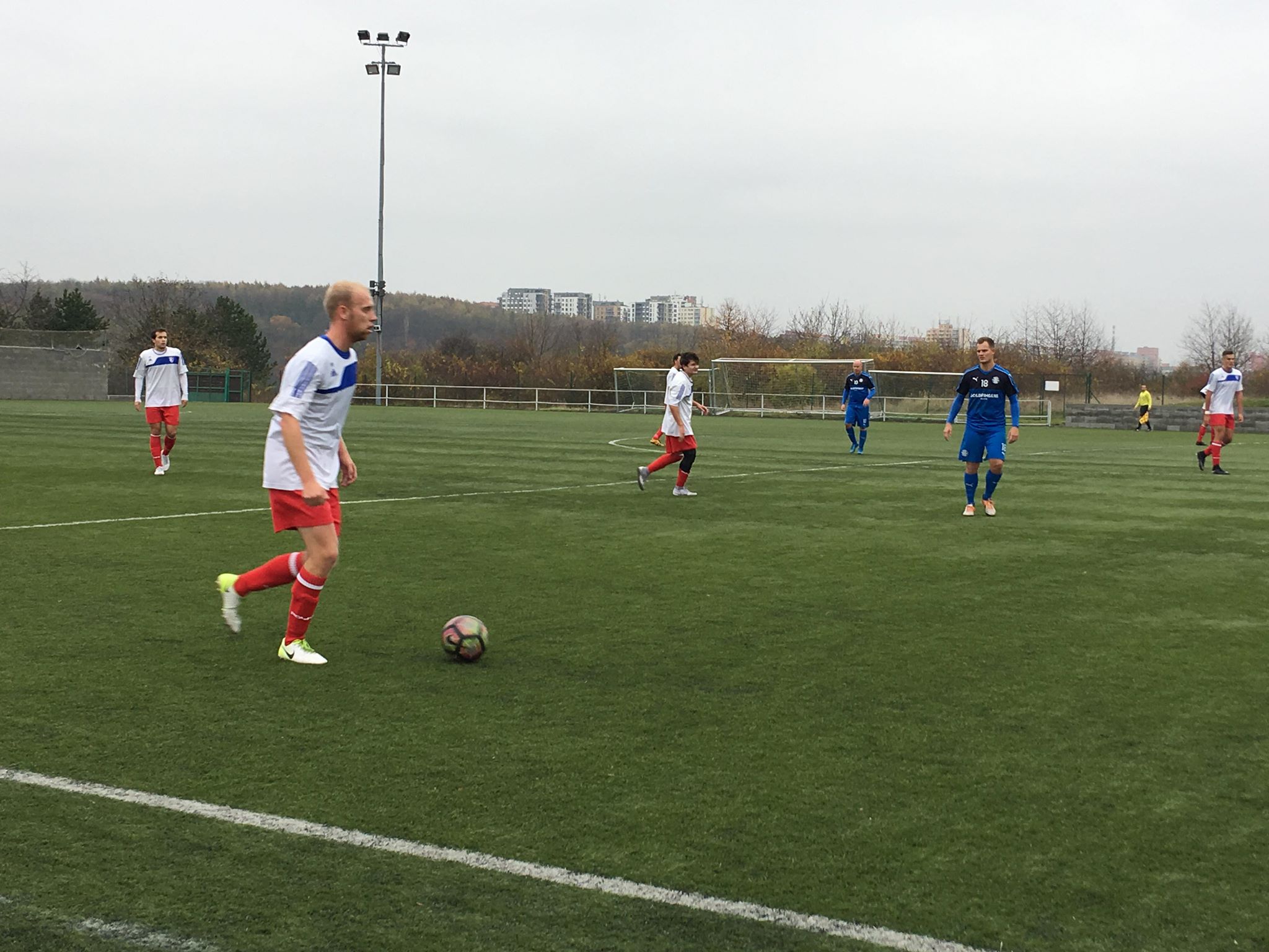 K předposlednímu domácímu zápasu naši borci nastoupili proti soupeři z Hrdlořez. Nic jiného než výhru za 3 body domácí nebrali v potaz. Začátek zápasu vyšel lépe našim hráčům. Velmi aktivní byla pravá strana Kloboučník – Nguyen. První úpravu skóre zařídil útočník Látal, který se dostal v 7. minutě k balónu a z malého vápna prudkou střelou překonal hostujícího brankáře, 1:0. Již v 9. minutě musel trenér z Hrdlořez sáhnout ke střídání a tak hostujícím zbyl už jen jeden náhradník. Po divokém úvodu se hra zklidnila. Pro oko diváka to nebyl nijak atraktivní fotbal, domácí se dopouštěli zbytečných ztrát a nepřesností. Soupeř spíše první půli bránil, než útočil. Do kabin se odcházelo za těsného stavu.