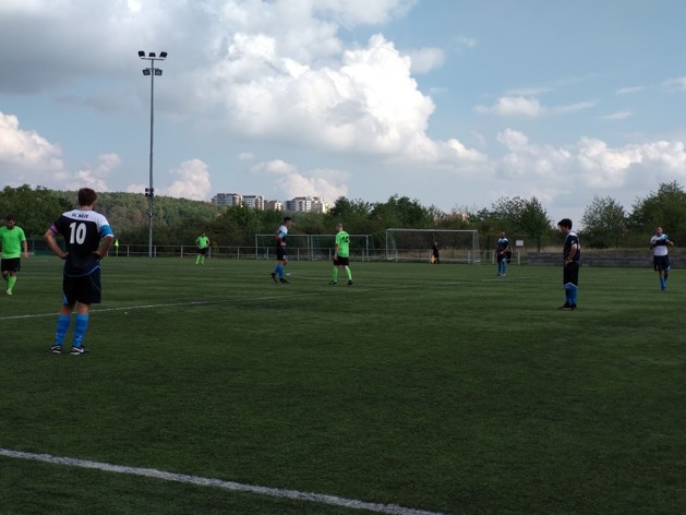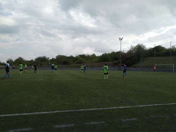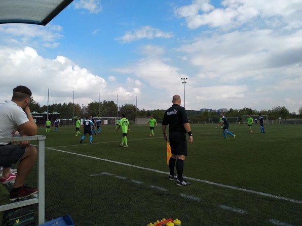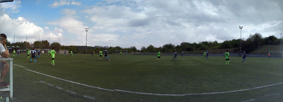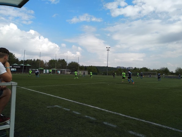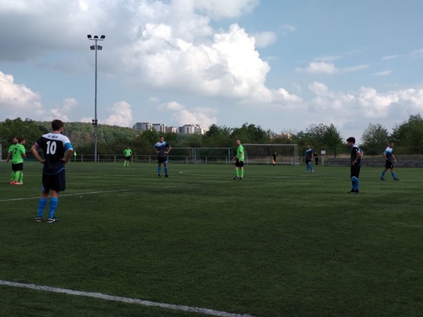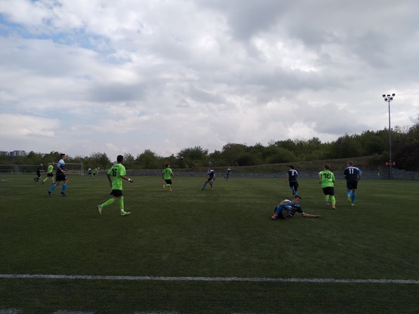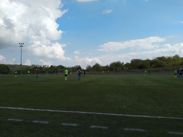 Již úvod zápasu naznačil, že soupeř na naše hřiště nepřijel odevzdat body. Převládal boj o střed pole, občasným zákrokem však svůj tým podržel Orlich. Naši borci se však postupně dostávali do zápasu a jejich útočný tlak sílil. Vše vygradovalo ve 39 minutě, bohužel ale brankou do opačné sítě. Po našem volném přímém kopu se soupeř zadarmo dostal k odraženému balonu a z rychlého brejku se dostal do vedení – 0:1. Háječtí se snažili výsledek srovnat, avšak finální fáze akcí nebyla úspěšná. Místo toho v závěru poločasu musel ojedinělou šanci hostů před vápnem faulem zarazit domácí Demuth. Následný volný přímý kop technickou střelou krásně proměnil hostující střelec – 0:2.
