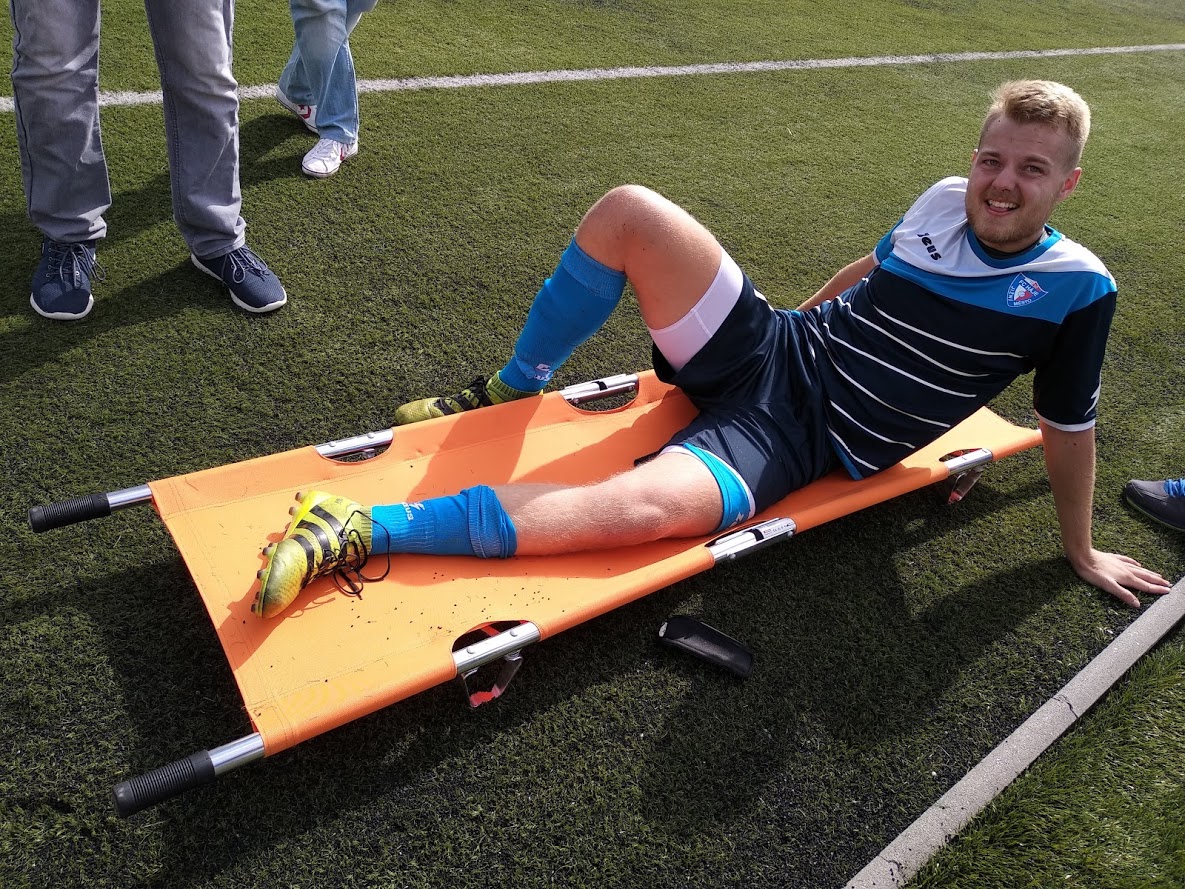 Začátek první půle se nesl ve stejném duchu. Míč u nohy měli převážně domácí a hosté si museli někdy pomoci faulem. Po jednom takovém se do branky pokoušel nakroutit míč Látal. Jeho krásný pokus bohužel skončil pouze na břevně. To už háječtí borci hráli bez střídajícího Šejnosty. Toho po nešťastném došlápnutí odvezla ze hřiště sanitka. Následné vyšetření odhalilo to, čeho se všichni báli. Zlomený kotník a tím pádem Adamův konec v podzimní části sezóny. Ztráta je o to větší, protože Šejnost má jednu z nejlepších tréninkových docházek…