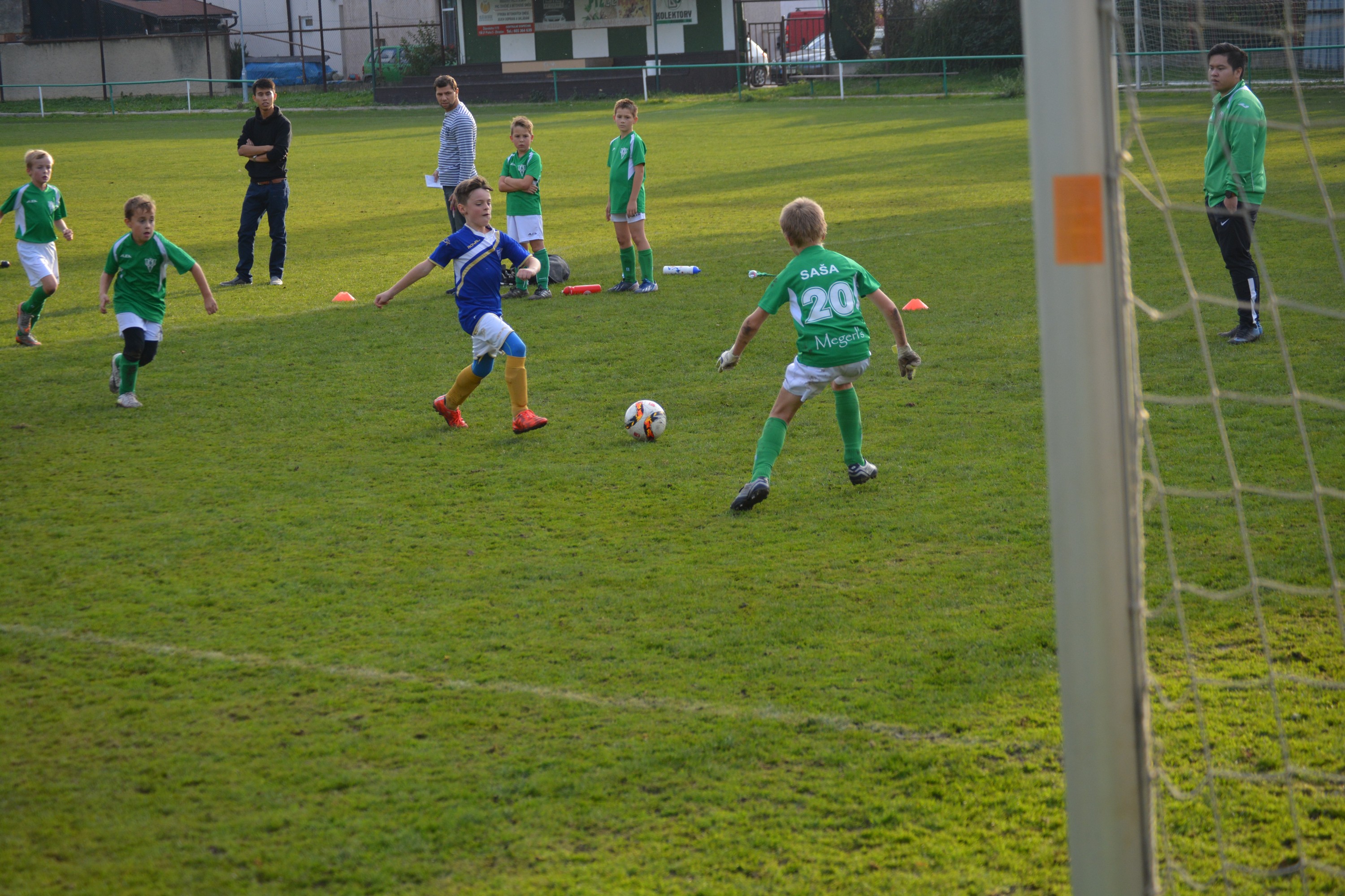 Dolní Měcholupy však nastoupily ve slabší sestavě, ve které bylo i pár kluků, kteří byli mladší o rok či o dva. A tak hned v první čtvrtině se nám podařilo utkání rozhodnout a dál se už hrálo jen o skóre a udržení čistého konta. V první polovině zápasu by se jen těžko hledaly chyby v naší hře, hráči dokázali vybírat správná řešení a hráli týmově. Padlo několik krásných gólů po ukázkových akcích a soupeře jsme nepustili téměř k ničemu. Ve druhé polovině se tolik nezměnilo, jen bylo k vidění z naší strany více neproměněných šancí, jelikož už kluci hráli více na sebe.