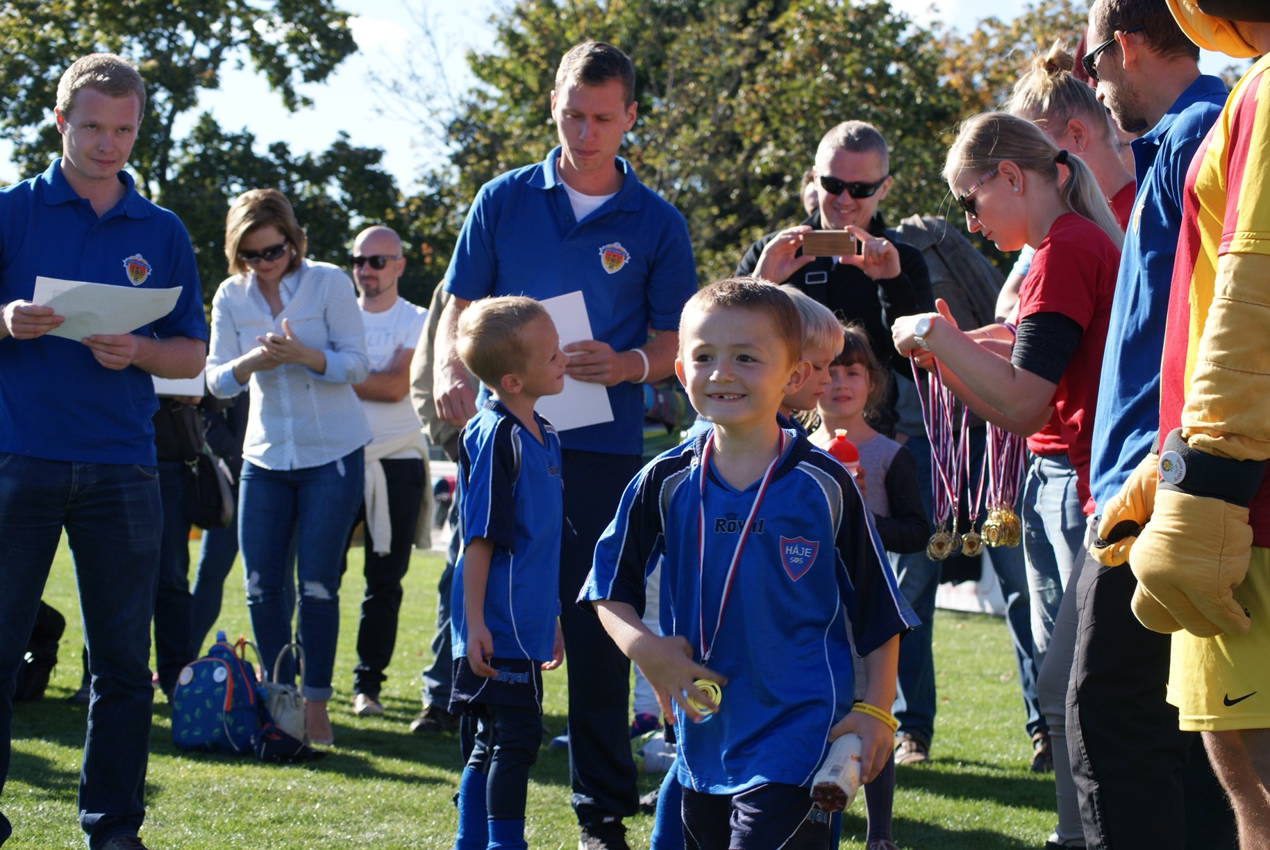 Turnaje se zúčastnilo 12 týmů, z toho 2 hájecké. Do našich týmů se kluci rozdělili sami bez zásahu trenérů. Hrálo se 3vs3 bez brankáře na 4 branky ve dvou skupinách, na počet vstřelených branek, čísla se však nezveřejňovala (jen celkový součet na konci turnaje), pomáhala jen vykrystalizovat závěrečnou skupinu, aby proti sobě hrály přibližně vyrovnané týmy. Poprvé si také mohli rozhodčí vyzkoušet řídit tento jiný formát. Bylo třeba si však o tom povídat i s nimi a mám radost, že byli otevření novému pohledu a některým názorům, jak s dětmi komunikovat. I naši kluci se vlastně poprvé setkali s důraznějšími rozhodčími, a také bylo zajímavé sledovat, jak na to reagují. Výtky rozhodčím by měly být směřovány spíš ke mně, ale přijde mi, že je prostě ještě brzo kluky omezovat v tom, že gól platí jen tehdy a tehdy. O tom jsme si s klukama ale popovídali a myslím, že to pochopili. Je třeba, aby věděli, že se může stát, že na ně rozhodčí budou mluvit jinak.