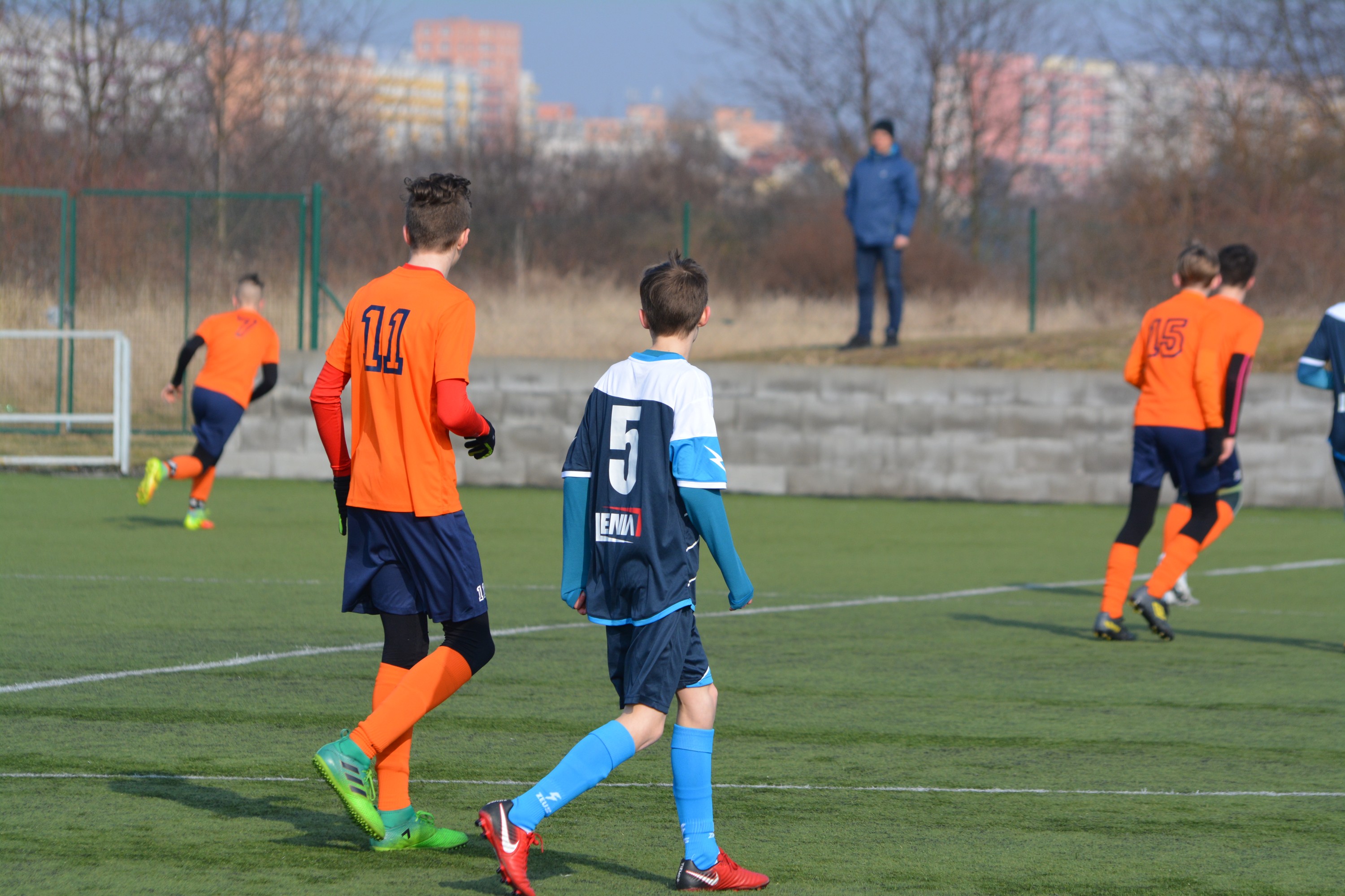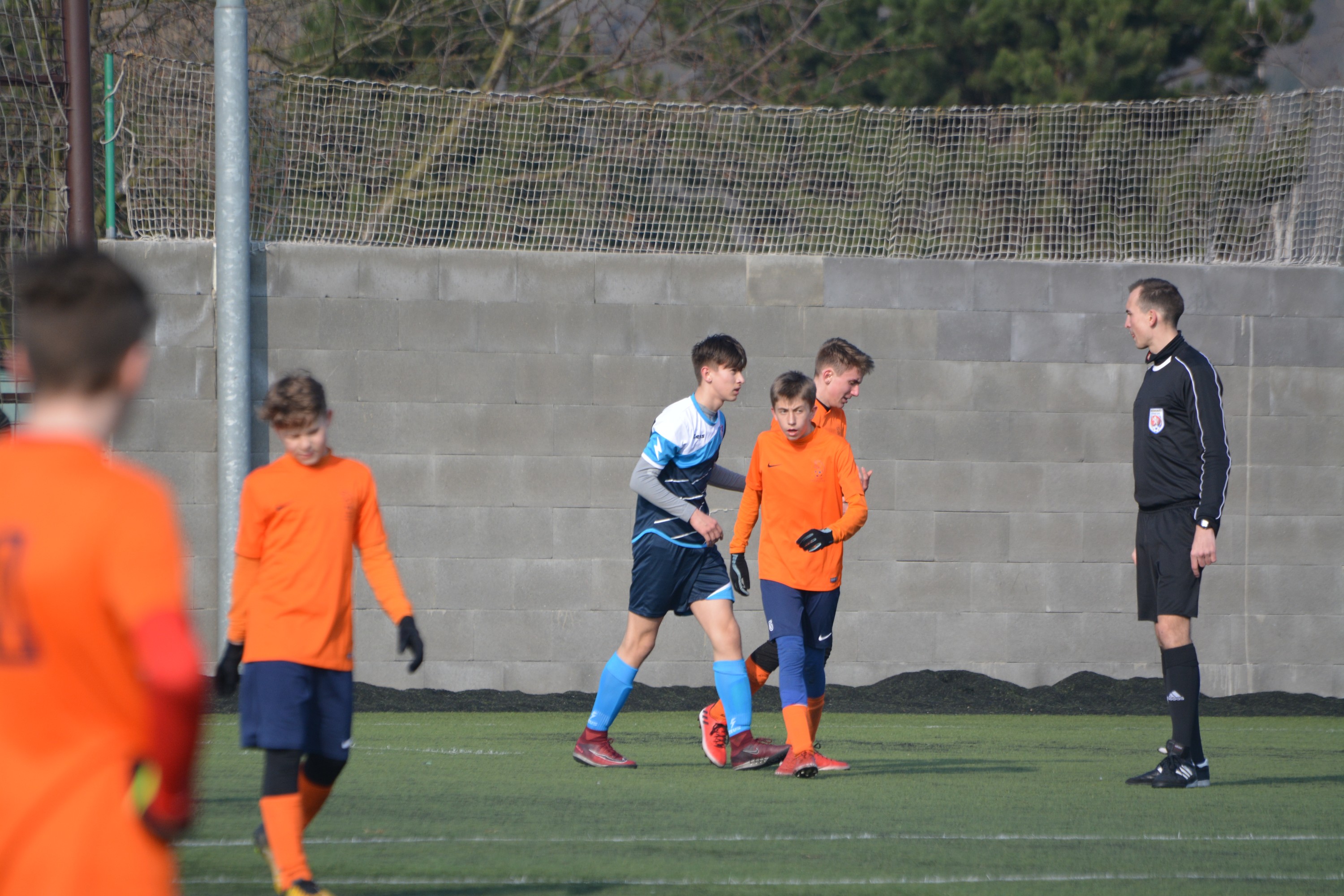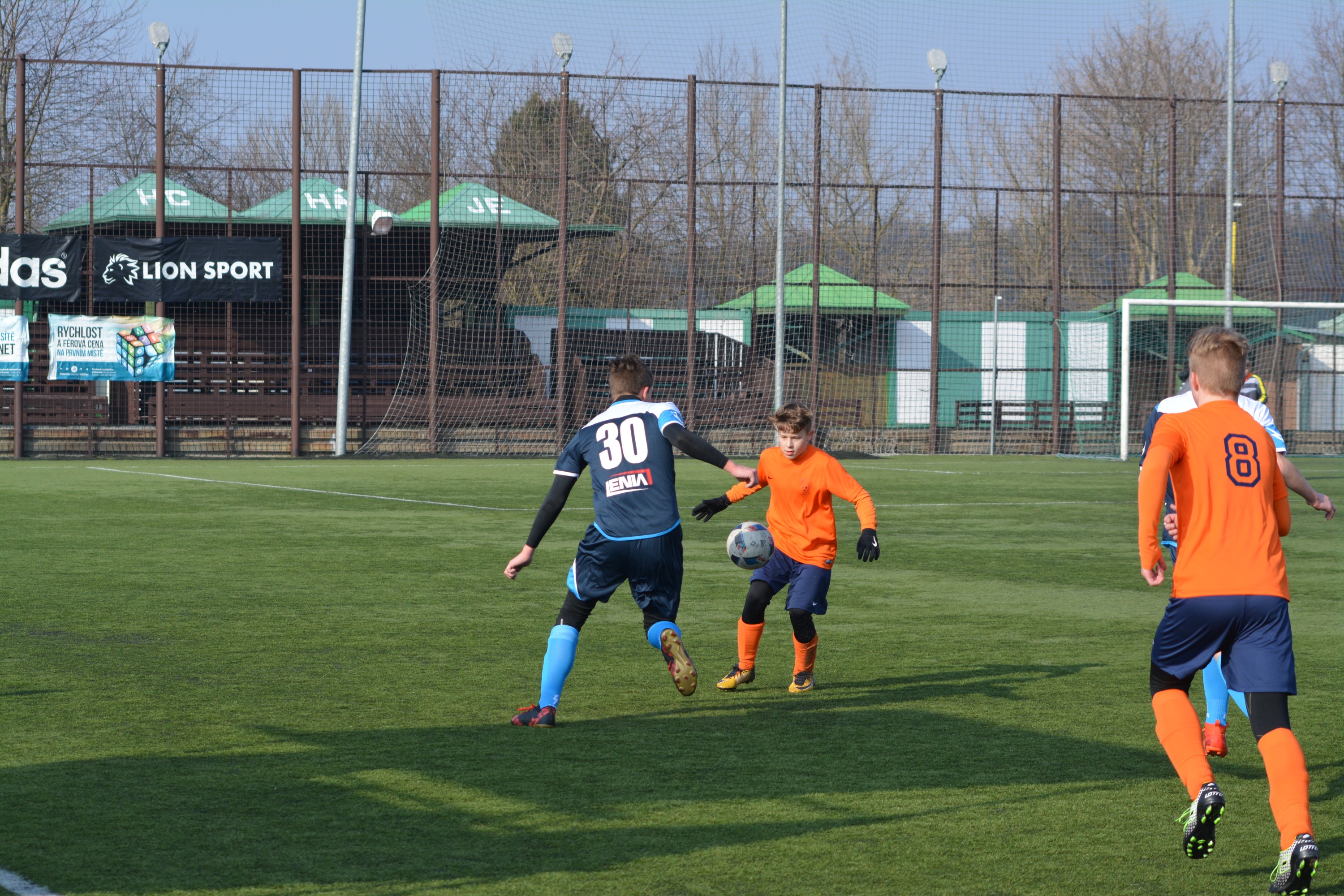 První gól jsme vstřelili po pěkné křídelní akci a pohotovému doražení míče do brány 1- 0. Pár minut na to jsme vyrobili tři chyby za sebou a hráči hostujícího týmu dokázali pohotově vyrovnat 1-1. Po obdržené brance jsme malinko znervózněli a nedokázali jsme naše šance proměnit. To se povedlo až pět minut před koncem prvního poločasu - znova vyhraný běžecký souboj a dobrý důraz do vápna 2-1. Nakonec jsme do kabiny šli za stavu 3-1 gólem do šatny – opět výborný důraz v osobním souboji a výborná orientace ve vápně.