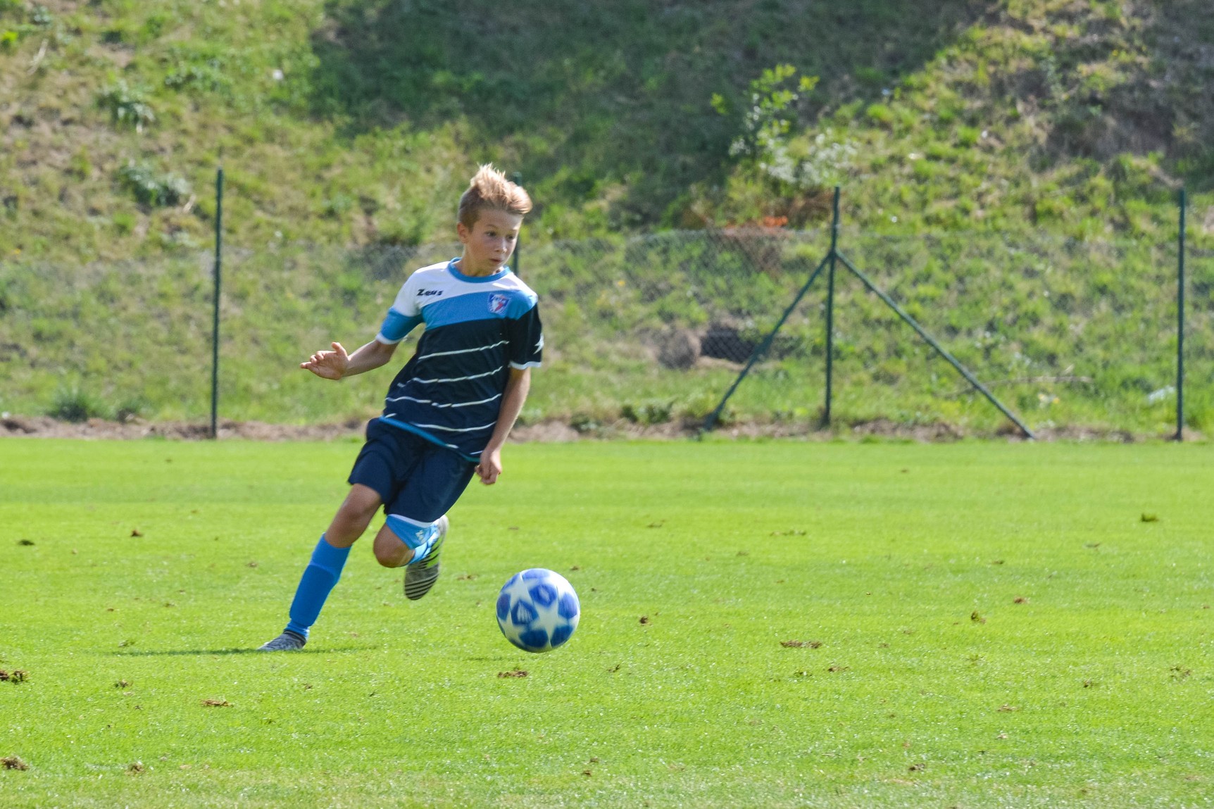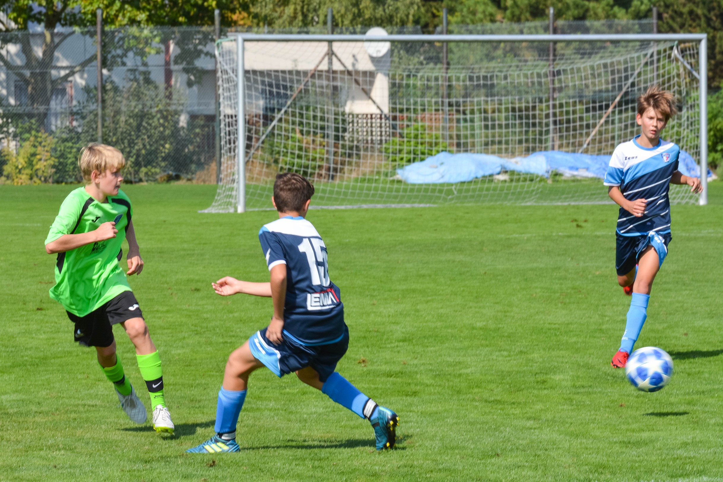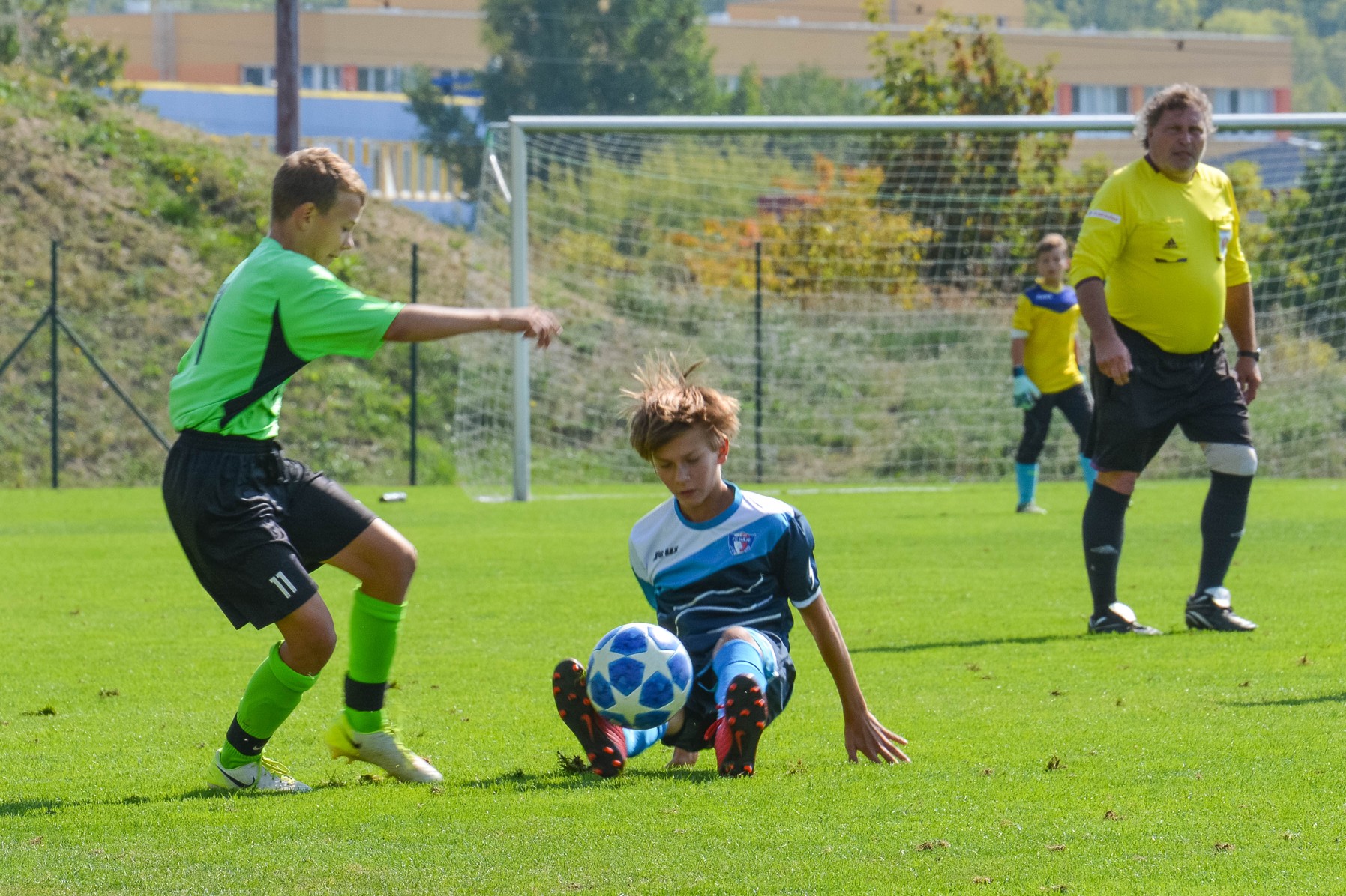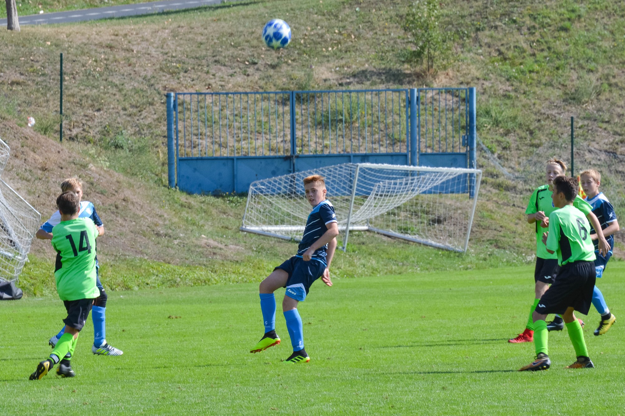 K zápasu jsme nastoupili v novém rozestavení a připraveni se poprat o první body ze soupeřova hřiště. I když zahřátí a namotivovaní, bohužel opět se nám nepodařilo chytnout začátek utkání a hned ve 3. minutě jsme inkasovali laciný gól, kdy na tento ročník nezvykle fyzicky vyspělý útočník soupeře č.9 nezastavil a důrazem před našim gólmanem získal míč a skóroval. Následně jsme hru srovnali, začali jsme kombinovat a po velmi hezké akci přes pravé křídlo a průnikovou přihrávku jsme zápas srovnali. Soupeř šel po dalších 6ti minutách znova do vedení po našem nedůrazu při rohovém kopu. V krátké době jsme ale odpověděli nádhernou ranou z cca 35 metrů, kterou náš útočník přeloboval brankáře. První poločas ještě zpestřila dvě rozhodnutí hlavního rozhodčího, kdy faul na našeho útočníka v malém vápně soupeře zůstal nepotrestaný a naopak nastřelená ruka našeho po souboji v malém vápně ležícího záložníka byla důvodem penalty. Měli jsme však štěstí, protože soupeř pokutový kop neproměnil.