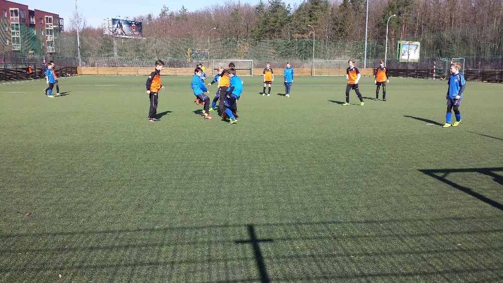 Hrálo se tedy už na větším hřišti a s větším počtem hráčů 7+1. Byl jsem hodně zvědavý, jak se s tím kluci poperou, jelikož to pro většinu byla nová zkušenost.
