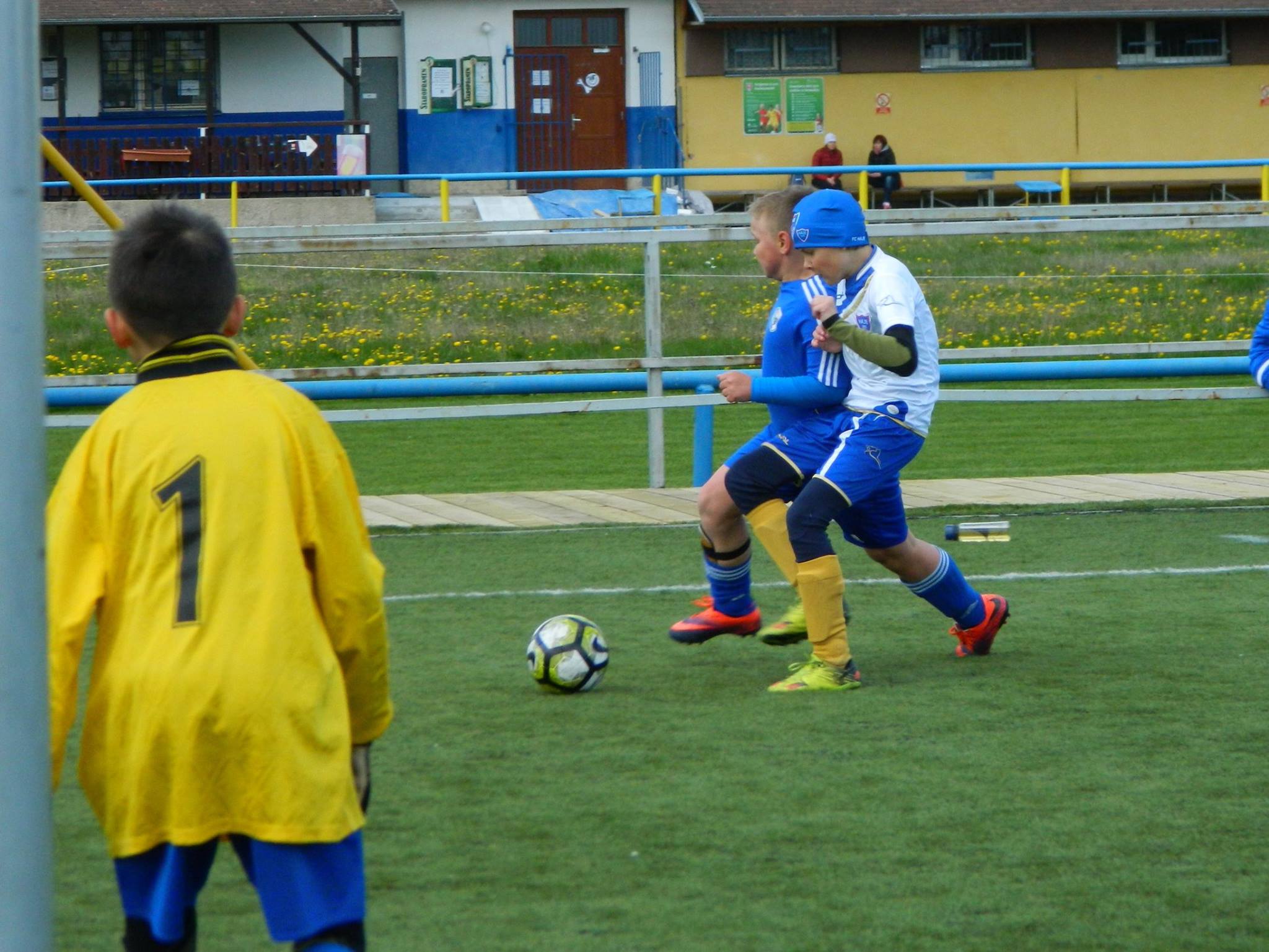 Na hřišti, kde se utkali kluci se staršími, také byla vidět velká bojovnost, ale i zde poslední čtvrtka přinesla nadílku v podobě gólů.