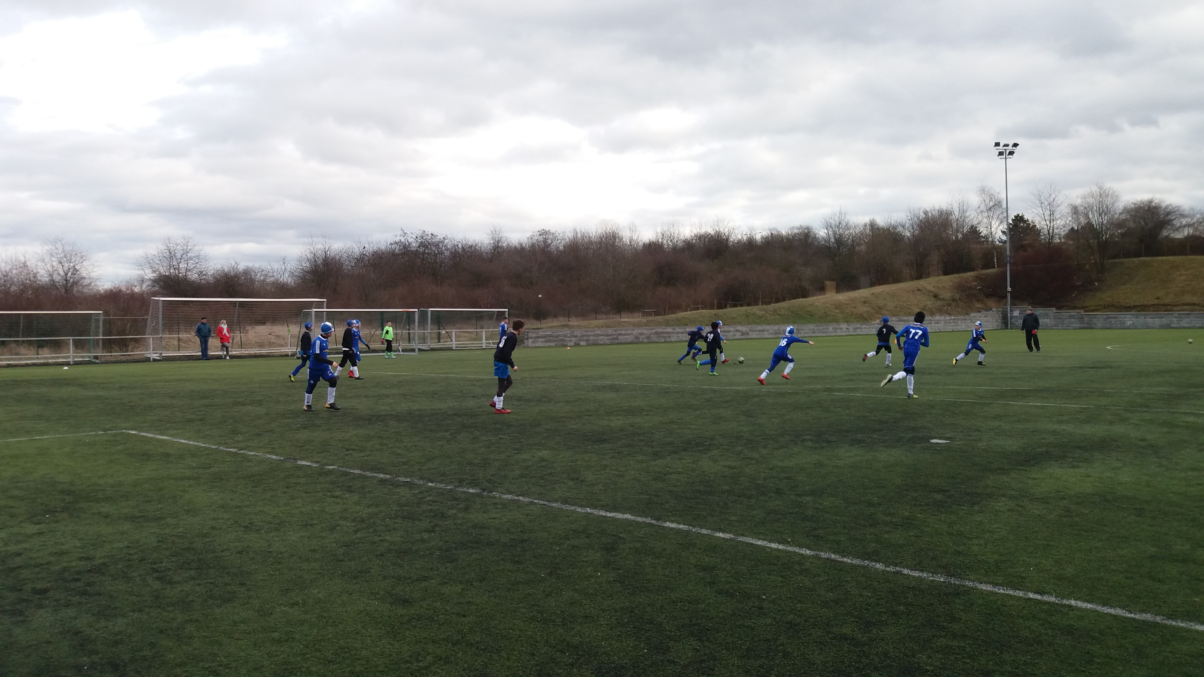 Zápas začal v podobném stylu. Soupeř byl lehce fotbalovější a útočník s číslem deset vytvářel na levé straně řadu nebezpečných situací. Naši kontrovali velkou bojovností a slušnou obranou. Soupeř šel cca po 10 min. do vedení, naše kluky gól vyburcoval a do půlky se podařilo srovnat skóre.