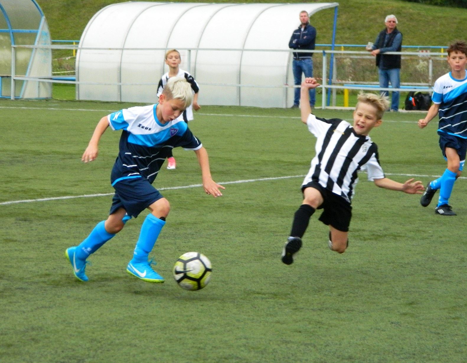 Kluci ale zaslouží velkou pochvalu za příkladnou bojovnost, pomocí které se jim nakonec podařilo jejich zápas dotáhnout k remíze. A protože jejich kamarádi na prvním hřišti soupeře o pár gólů předčili, mohli jsme opět slavit celkové vítězství. V soutěži Elite tak zůstáváme v letošním ročníku i nadále stoprocentní.