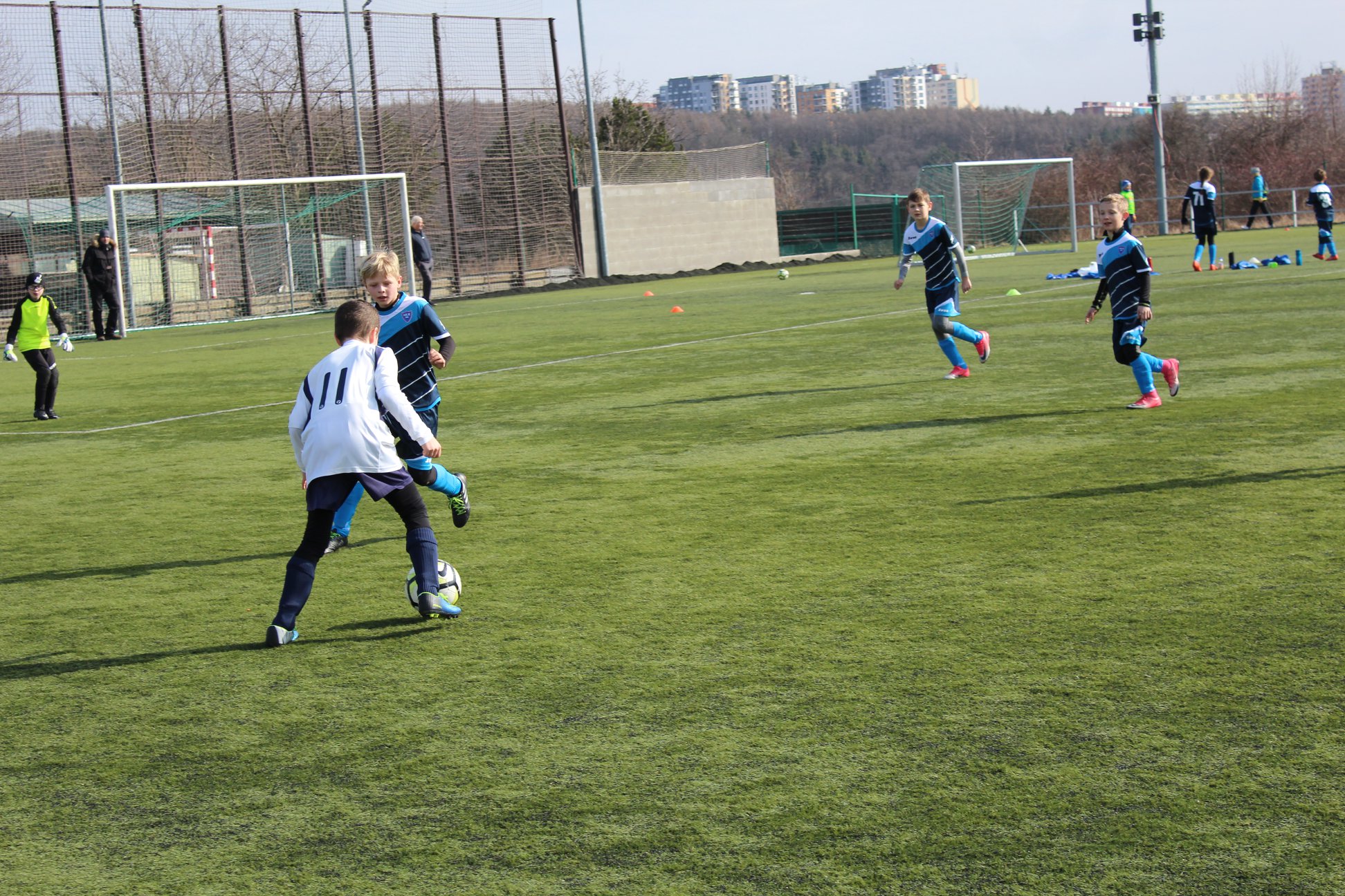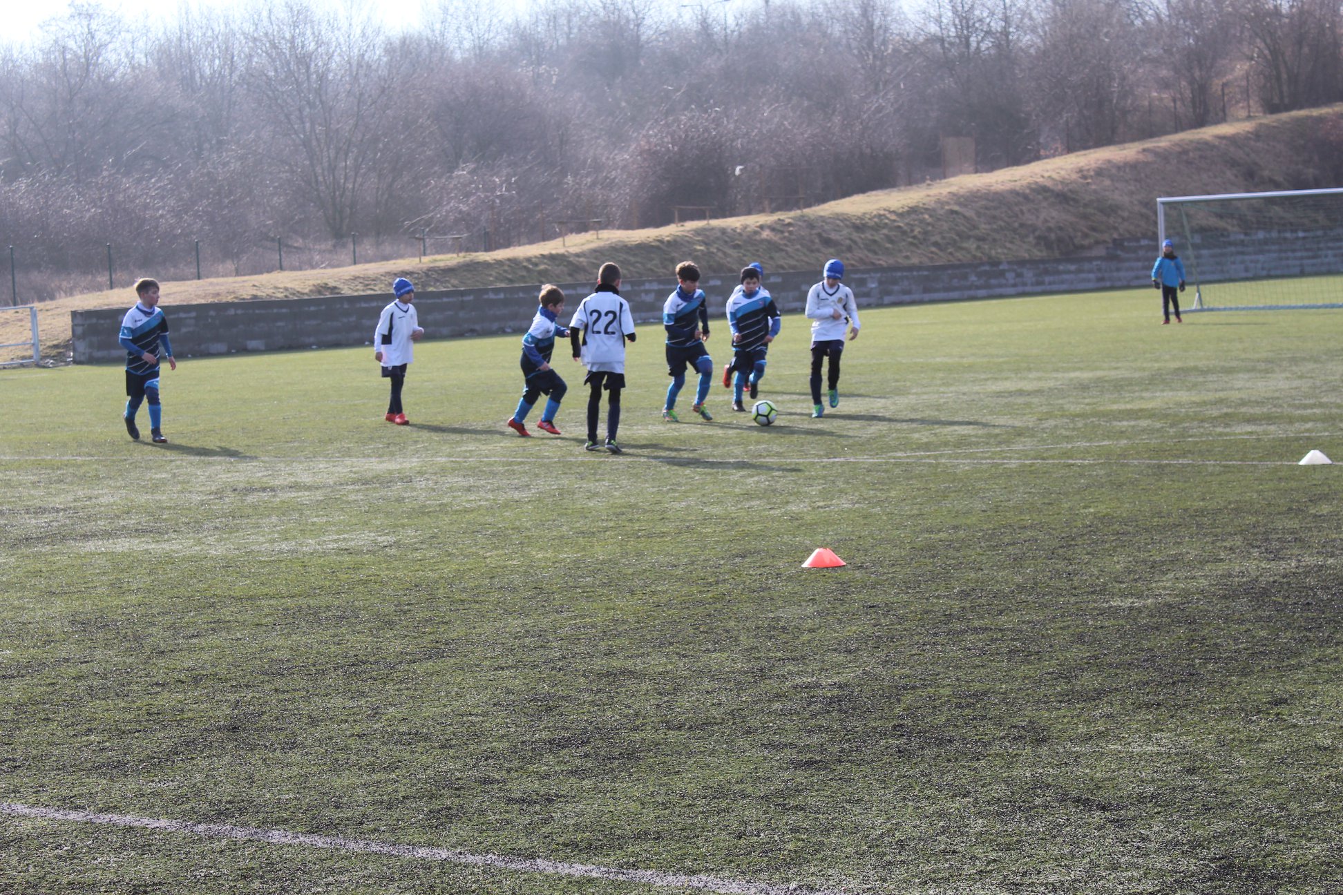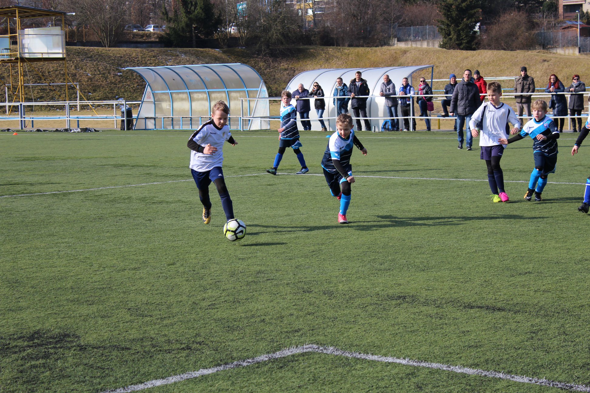 Po střídavých výkonech v přípravě jsem byli všichni zvědaví, co kluci a Nikča předvedou v soutěžním zápase. Před utkáním trenér Matěj celý hájecký tým povzbudil svým proslovem a od první minuty jsme byli lepším týmem. Přehrávali jsme soupeře v kombinační hře, individuálních dovednostech i v osobních soubojích. Především v obranné činnosti byl náš výkon téměř bezchybný, kdy se kluci s Nikčou dobře zastupovali a žádný míč pro ně nebyl prohraný. Jen vlivem smůly v zakončení a několika střelám do tyče jsme poločas nevyhráli větším rozdílem. Druhá skupina soupeře byla výkonnostně znatelně lepší a soupeř nás v druhé části začal přehrávat, především svoji rychlou kombinační hrou.