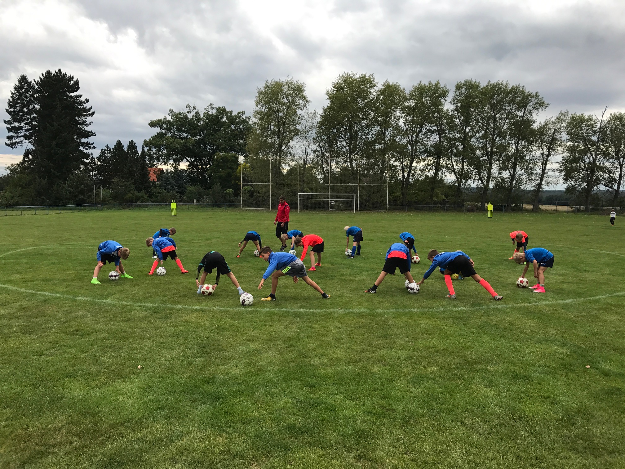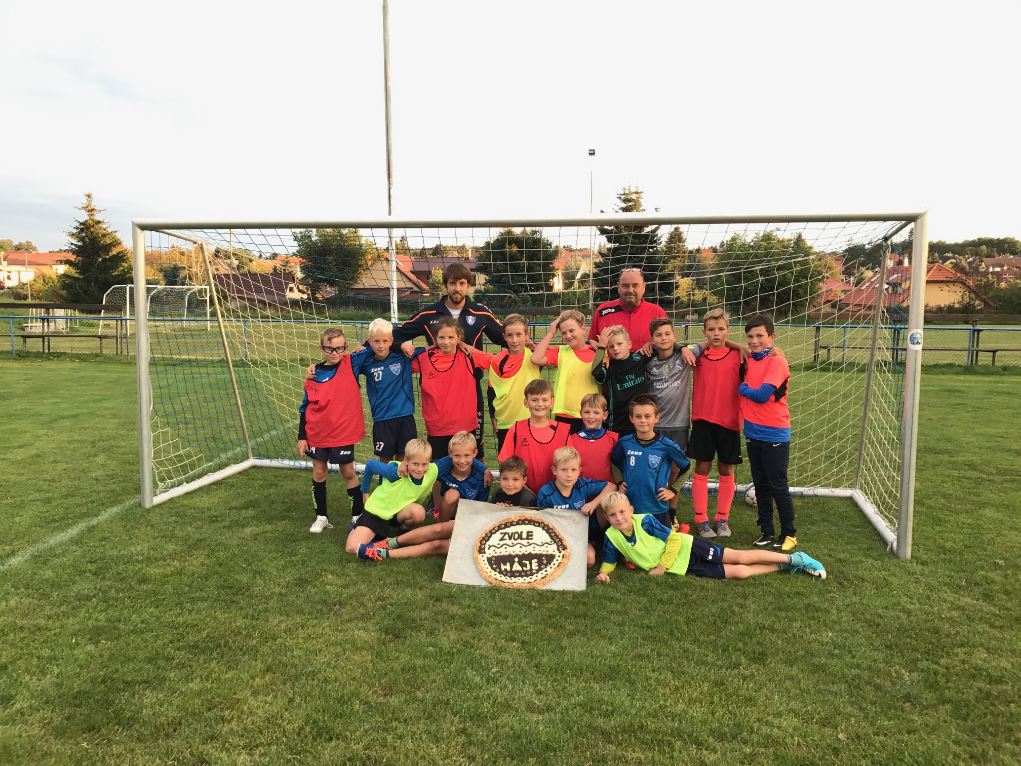V pondělí pak všichni společně potrénovali pod Matějovou taktovkou ve Zvoli na trávě, na oslavu sobotního vítězství dostali místo dortu veliký koláč. Oba dny jsme si moc užili a těšíme se na další!