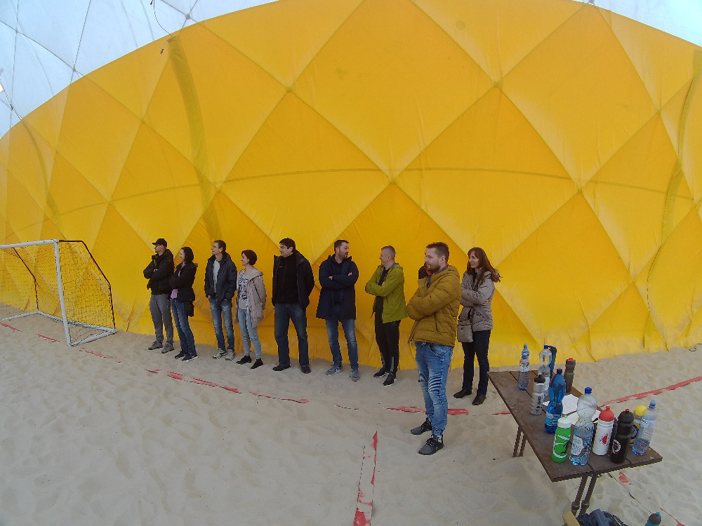 Měli jsme možnost si fotbal na písku vyzkoušet v turnajovém pojetí, a to v beach aréně v Radotíně, která je zimní základnou českých reprezentačních týmů. Čekala nás tam velmi přátelská atmosféra i pečliví pořadatelé z realizačního týmu plážové kopané FAČR, kteří nás na začátku seznámili s pravidly i základními odlišnostmi hry. Postavili jsme hned 2 týmy, z nichž si každý zahrál 4 zápasy včetně ´bratrovražedné´ bitvy proti sobě.