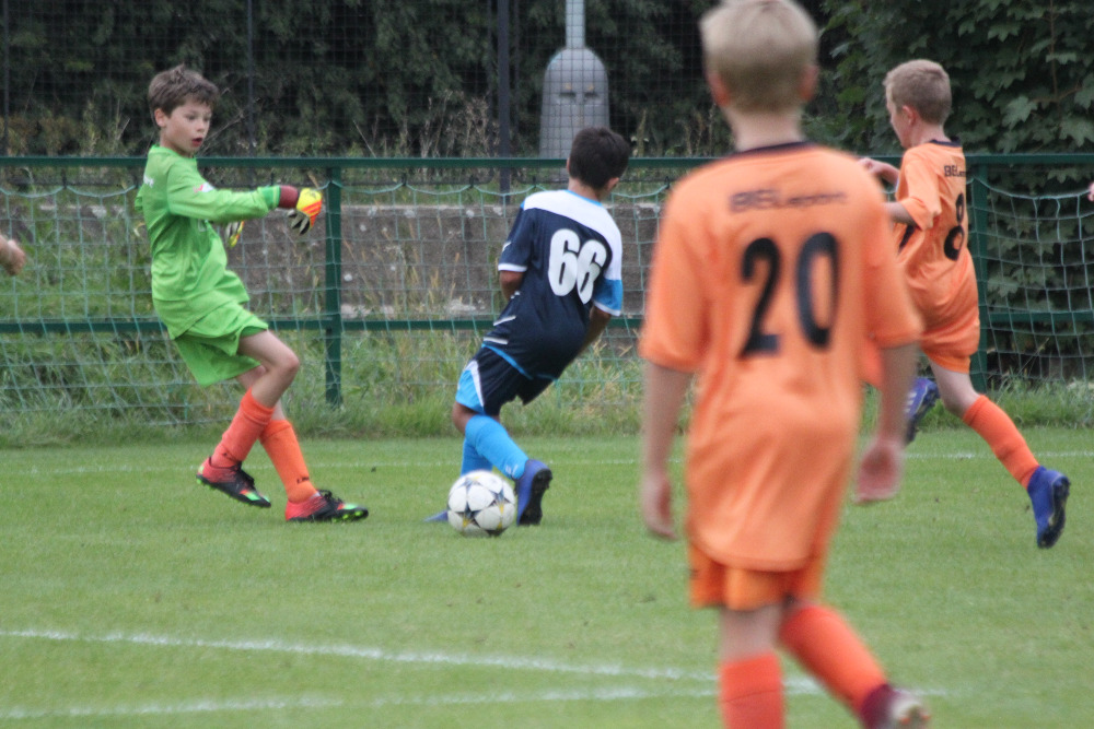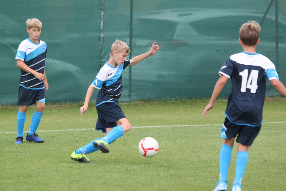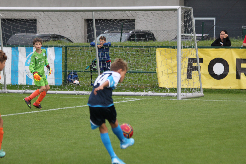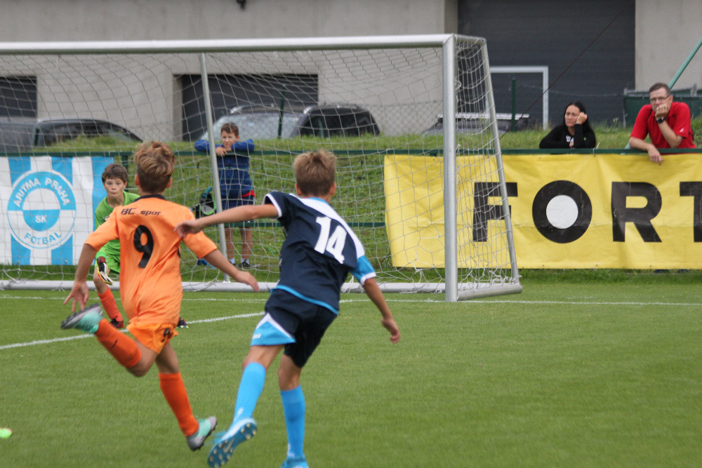 Hřiště jsme tentokrát cíleně rozdělili tak, abychom na každém měli všechny typologie hráčů. Pravé hřiště (z pohledu tribuny) bylo od počátku zdravě nahecované, a pustilo se do hry s velkou chutí. Oproti soupeři nás odlišovala mnohem větší chuť po míči a bojovnost o něj ve chvíli, kdy nebyl v našem držení. Po oťukávací první čtvrtině nám tato hra začala přinášet plody v podobě velmi rychlých přechodů do útoku, dobrých kombinací ve směru volných hráčů, a následně i gólů, kterých do půlky zápasu padlo 11.