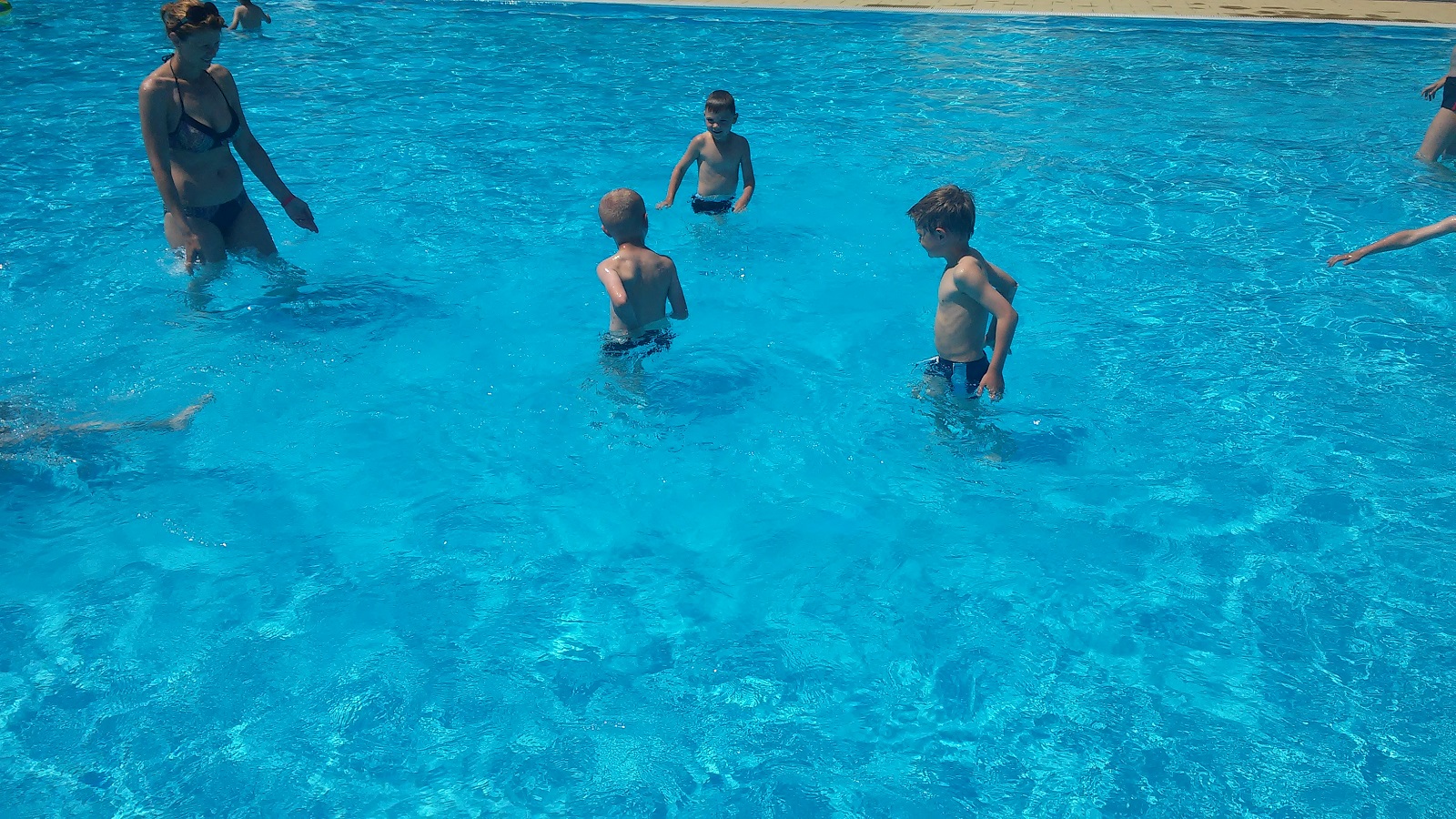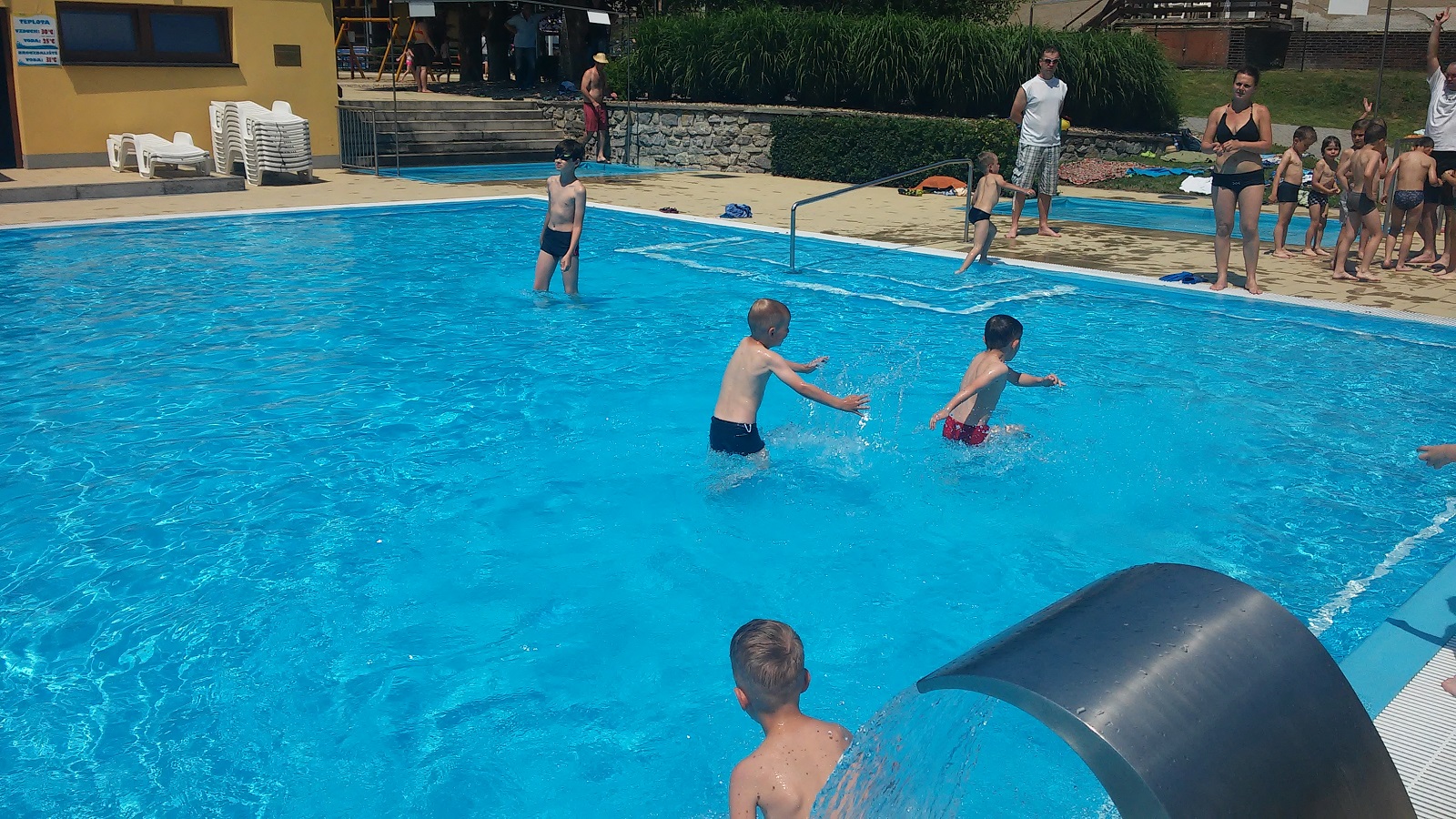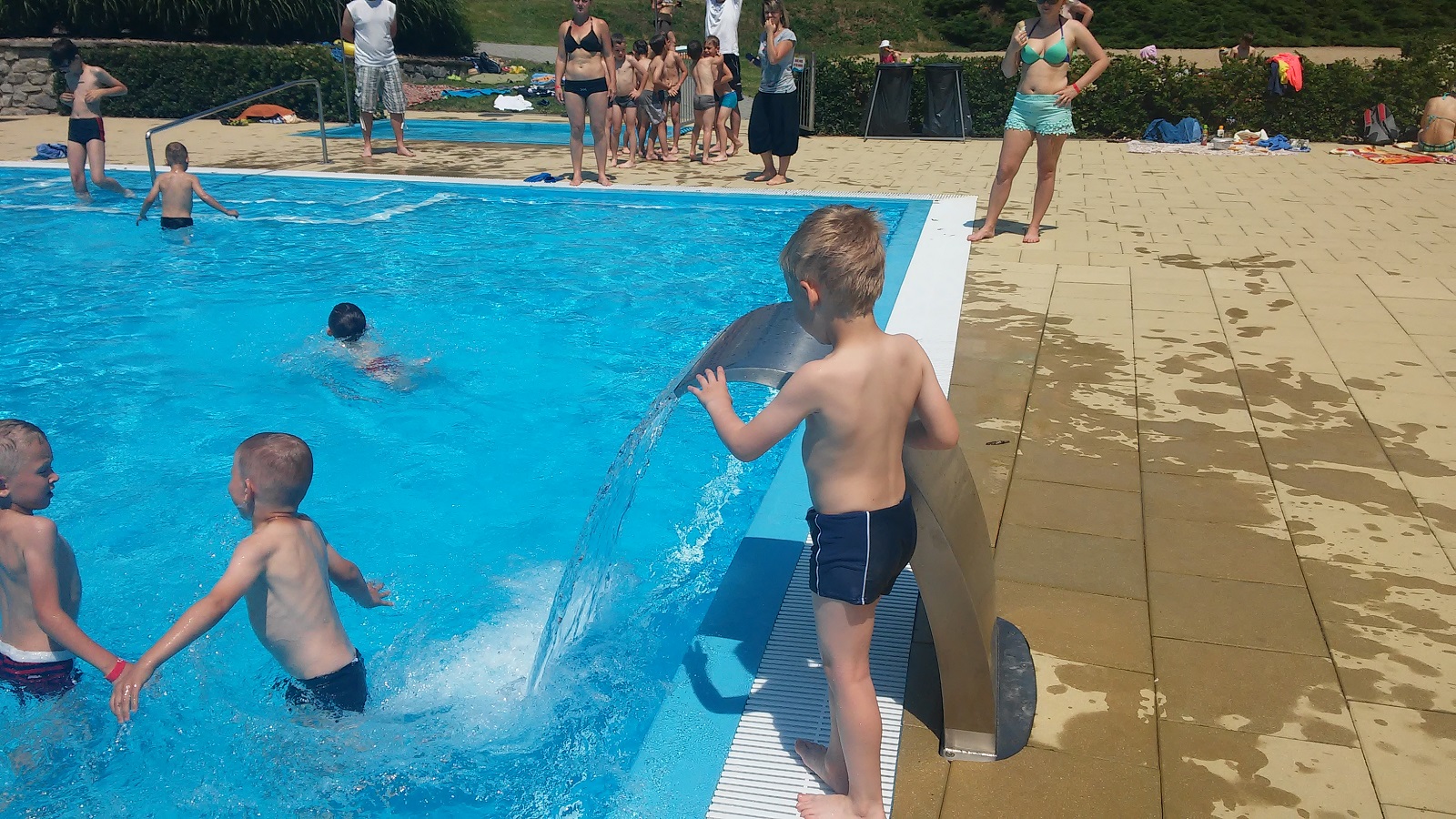 Ve volných chvílích jsme využívali hlavně koupaliště, které přišlo ve třicetistupňových vedrech velmi vhod. Kluci tam zašli dvakrát a parádně se vyblbli.