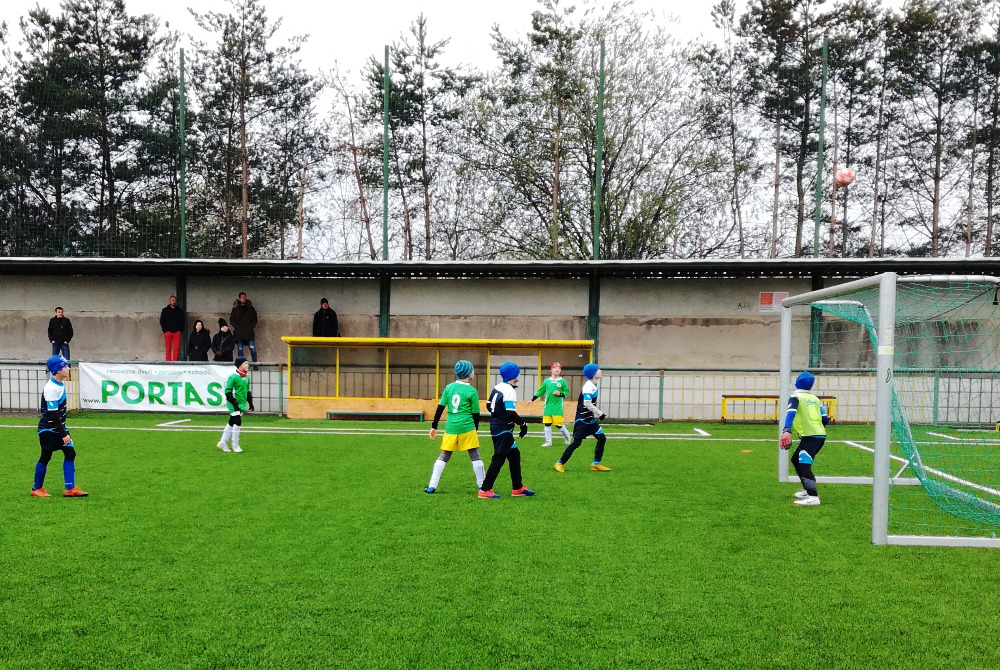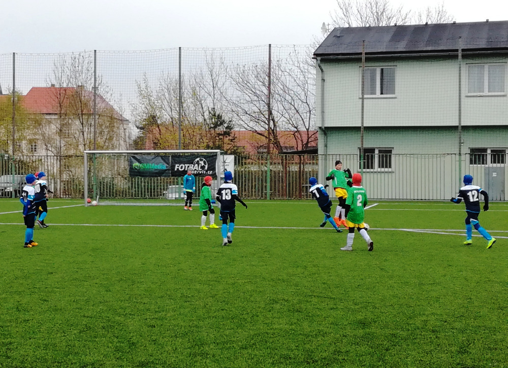 Sraz 8:15. Navíc utkání venku, což znamenalo budíček jako do školy. V neděli když prší? Komu by se to chtělo... avšak, začalo to všechno dobře. Měli jsme plný počet hráčů, tzn. 2 na střídání na každé hřiště, na místě všichni v čas, v šatně samý vtípek, veselá nálada. Nasazení při rozcvičování nadmíru vysoké, kluci lítali po hřišti jako vítr. Co soupeř - ve stejnou dobu byla část týmu na jiném turnaji, proto měli domácí k dispozici pouze 11 hráčů, tedy ani ne dost na systém 5+1 na dvou hřištích. Dohodli jsme se tedy na tom, že odehrajeme 1 x 4+1 a 1x 5+1 hřiště, soupeře tedy čekalo 68 minut hry bez střídání, což pro ně jistě byla výzva. Jak velká, jsme v tu chvíli ještě netušili...