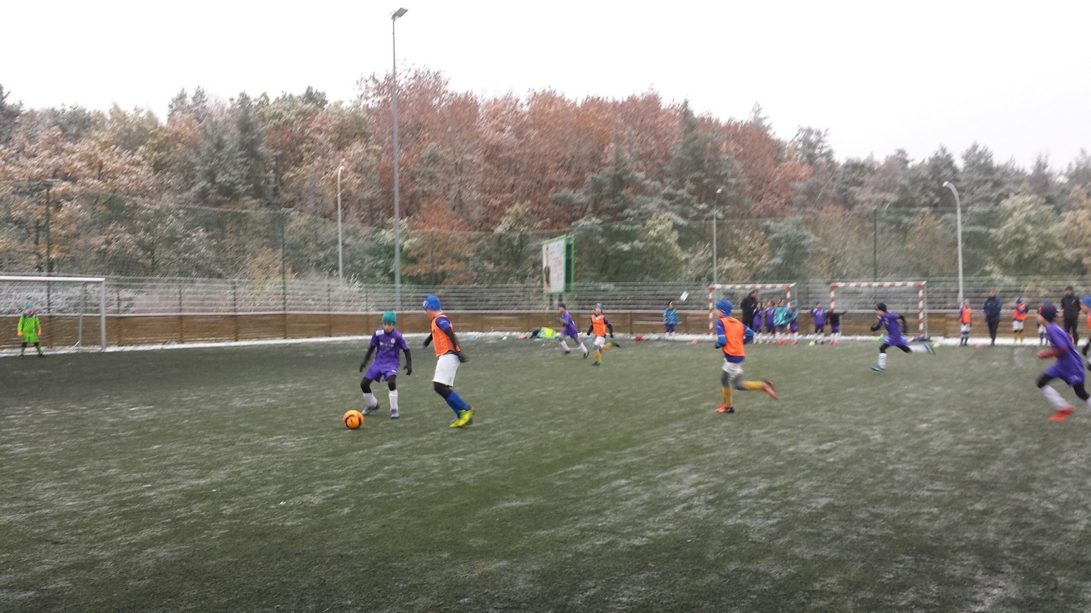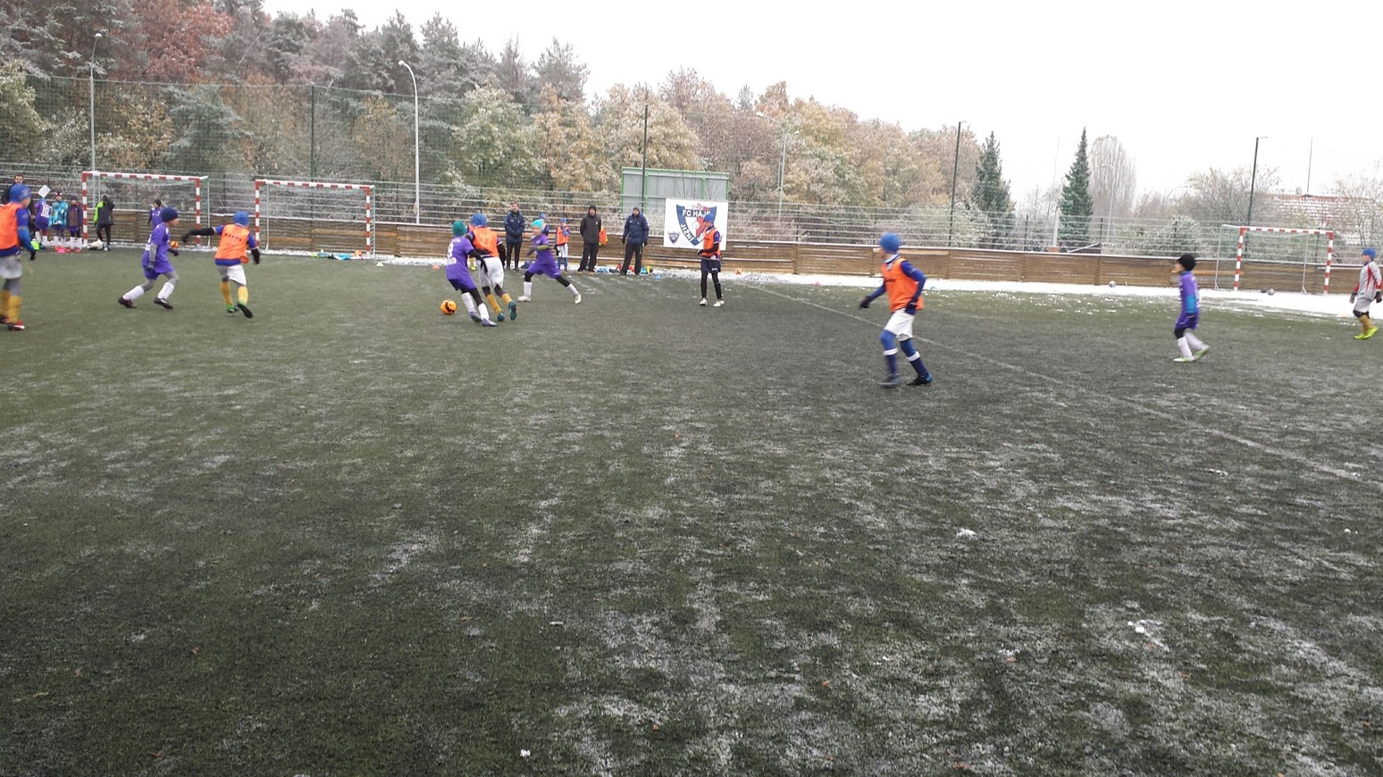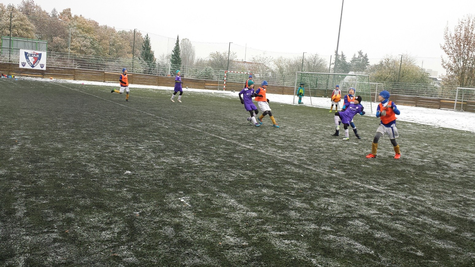 Nejdříve bych chtěl moc poděkovat našim tatínkům, kteří nám společně pomohli s úklidem sněhu z hrací plochy. Podmínky pro fotbal nebyly ideální, ale zase jsme si vyzkoušeli hrát na těžším terénu.