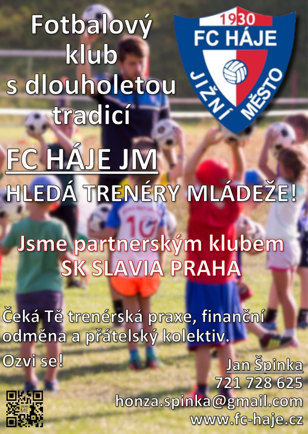Náš fotbalový klub FC Háje Jižní Město je klubem nastaveným na výchovu mládeže. Trenéři mají v přátelském kolektivu možnost smysluplného naplnění svého času. Podílí se na výchovném i fotbalovém růstu více než 350 dětí.